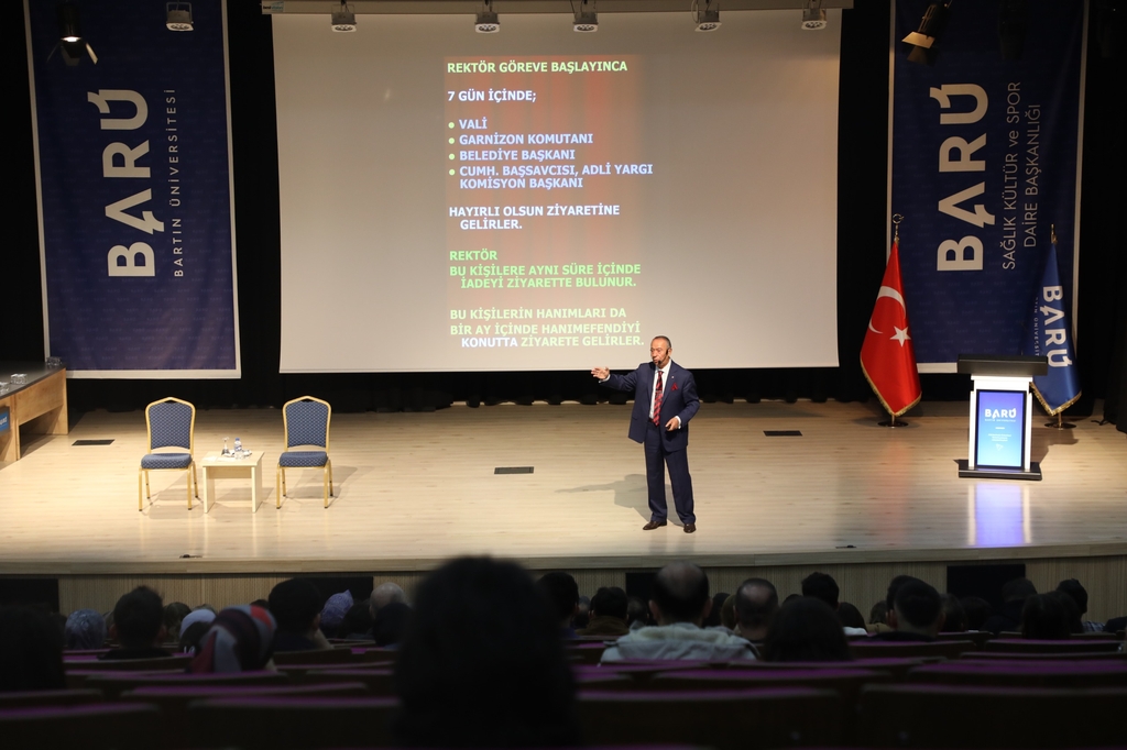 Bartın Üniversitesinde, protokol alanının duayen ismi ve bu alanda Türkiye’nin en yetkin otoritelerinden biri olan Yazar Nihat Aytürk tarafından iki gün süren “Protokol Kuralları" eğitimi gerçekleştirildi. Personel Daire Başkanlığının koordinasyonunda düzenlenen eğitim programı, üniversite personelinin kurumsal temsil kabiliyetini güçlendirmeyi, resmî ortamlarda doğru davranış prensiplerini pekiştirmeyi ve iletişim becerilerini üst düzeye taşımayı amaçladı.