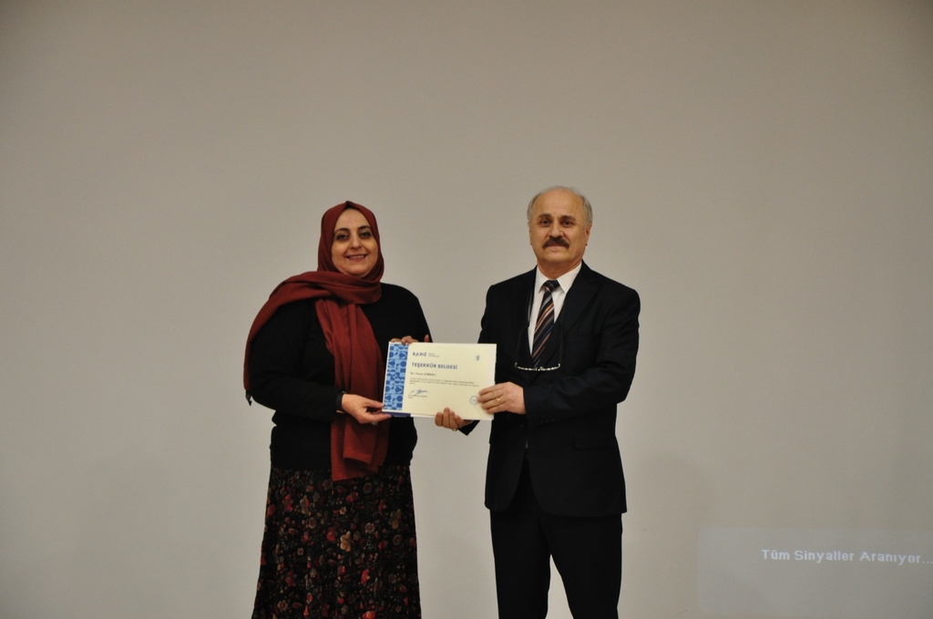 Eğitim sonunda, Daire Başkan Vekili Hülya ERSAL tarafından Üniversitemiz Genel Sekreteri Yavuz ÇOMARLI’ya teşekkür belgesi takdim edildi.