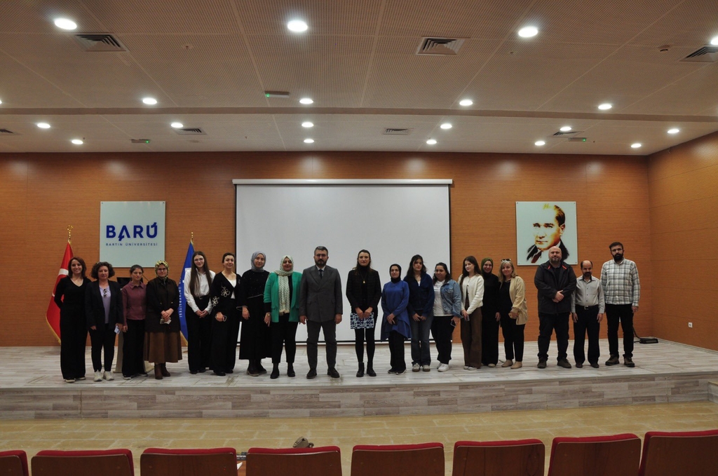Bartın Üniversitesi, personelin mesleki gelişimini desteklemek ve sosyal hizmet alanında farkındalık oluşturmak amacıyla önemli bir hizmet içi eğitime daha ev sahipliği yaptı. Bartın Aile ve Sosyal Hizmetler İl Müdürlüğünde Sosyal Çalışmacı olarak görev yapan Umut Çağla SATUN tarafından verilen “Koruyucu Aile Modeli Tanıtım ve Farkındalık” konulu eğitim, 28 Kasım 2025 tarihinde Kutlubey Yerleşkesi Rektörlük Konferans Salonu'nda gerçekleştirildi.Eğitimde, Türkiye’de koruyucu aile hizmetlerinin yasal dayanakları, başvuru süreçleri, koruyucu ailelerin görev ve sorumlulukları ile çocuğun üstün yararı ilkesinin uygulamadaki önemi ayrıntılı biçimde ele alındı.